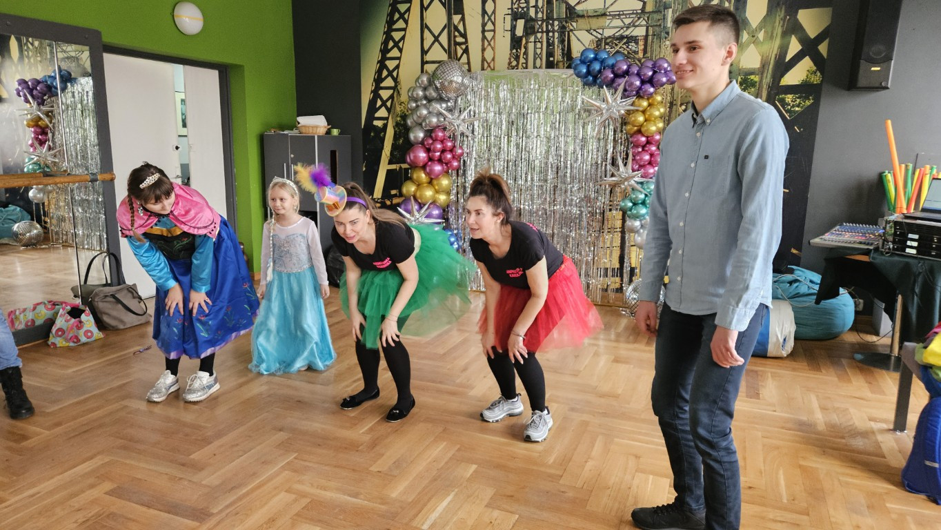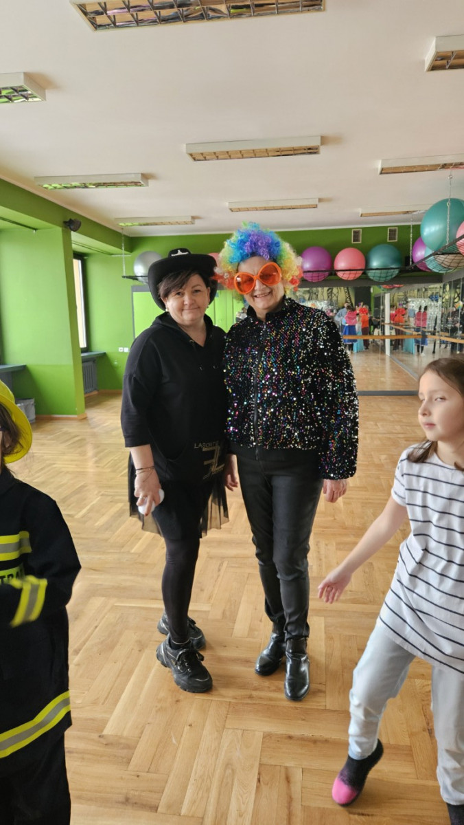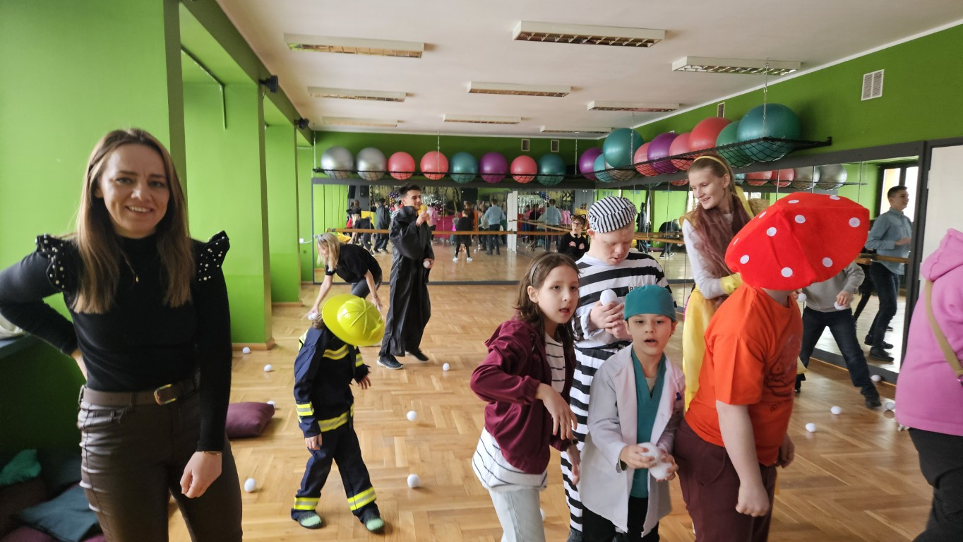 Byliśmy pod ogromnym wrażeniem pomysłowości uczestników! Na sali gościliśmy bajkowe postacie i superbohaterów. Integracyjne zabawy w kole i konkursy wywołały mnóstwo śmiechu i sportowej rywalizacji. Nad wszystkim czuwały – Pani Karolina i Pani Weronika.