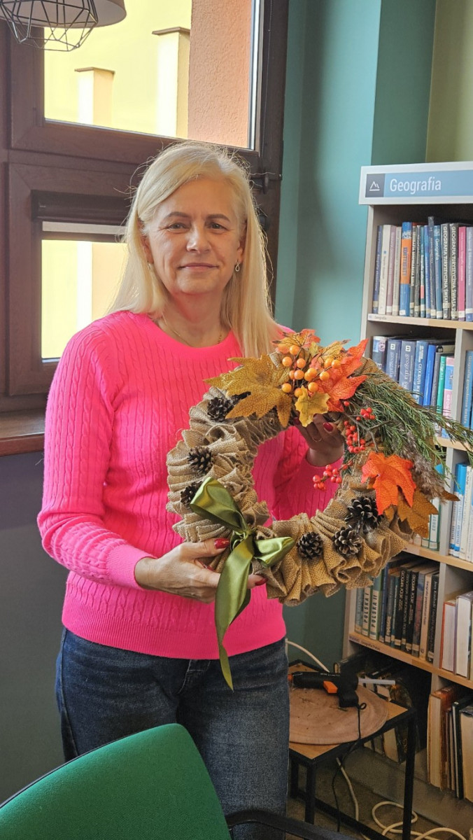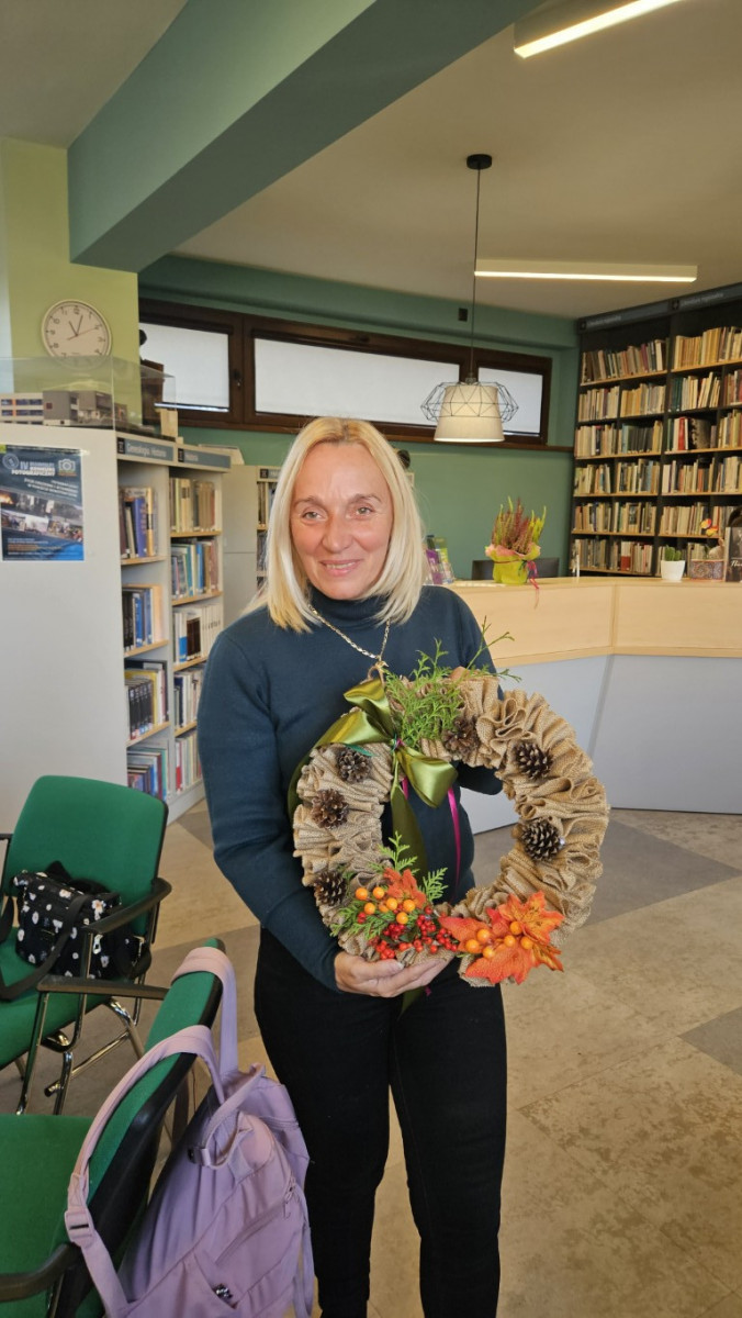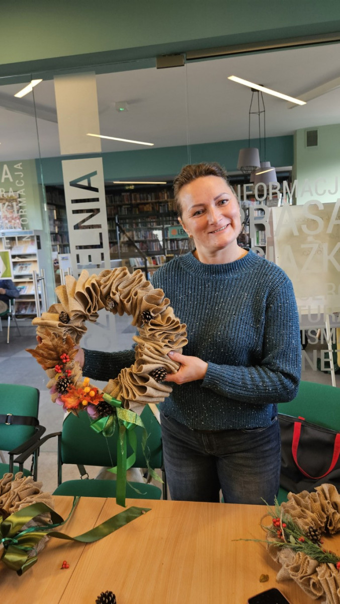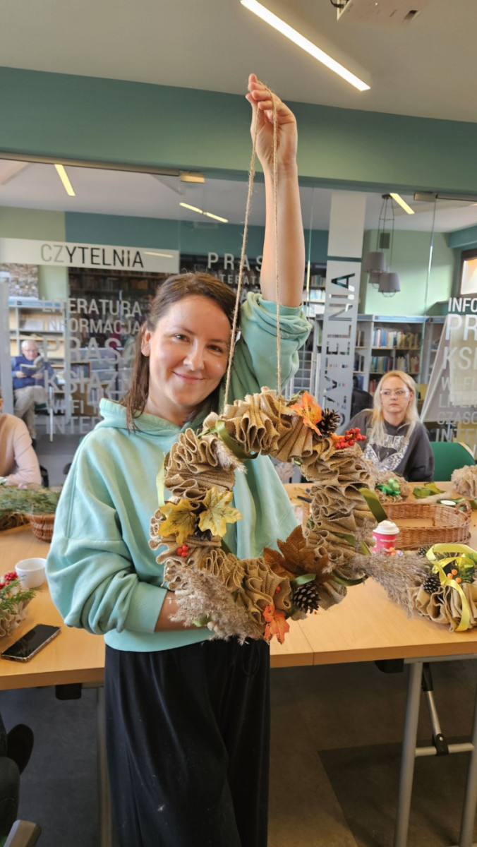 W dniu dzisiejszym w Miejskiej i Powiatowej Bibliotece Publicznej w Nowym Tomyślu odbyły się warsztaty z tworzenia stroików jesiennych.
