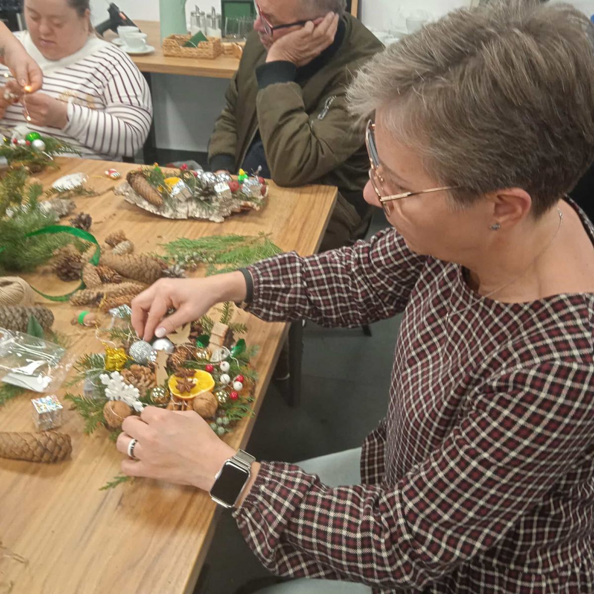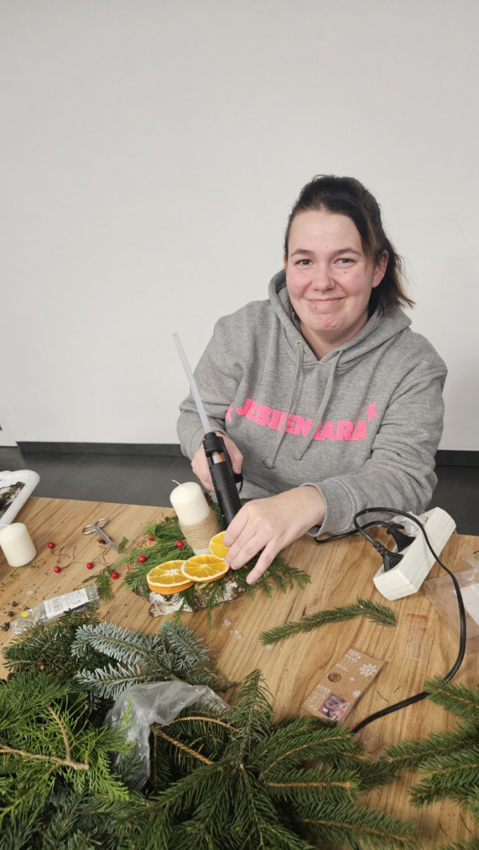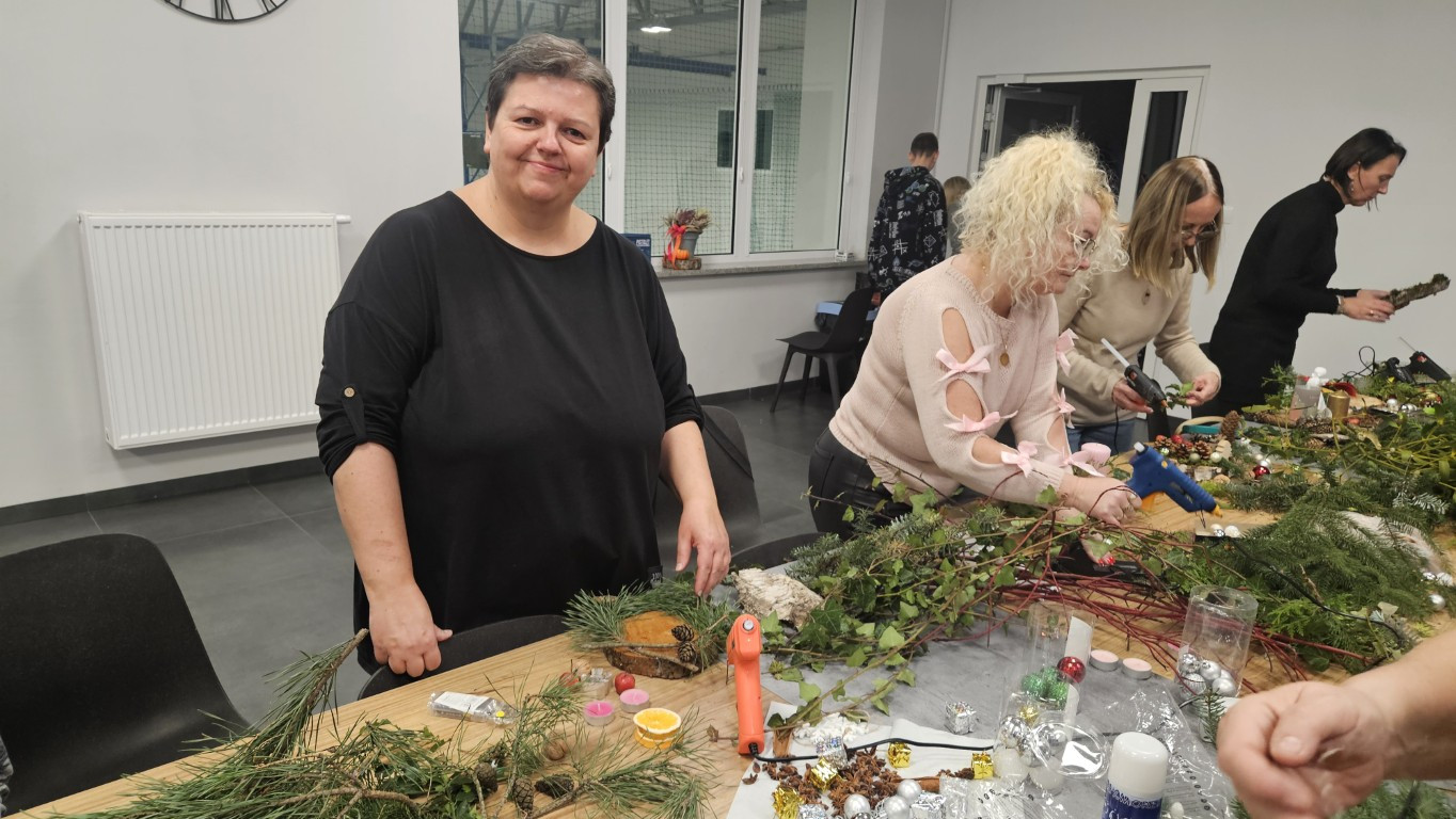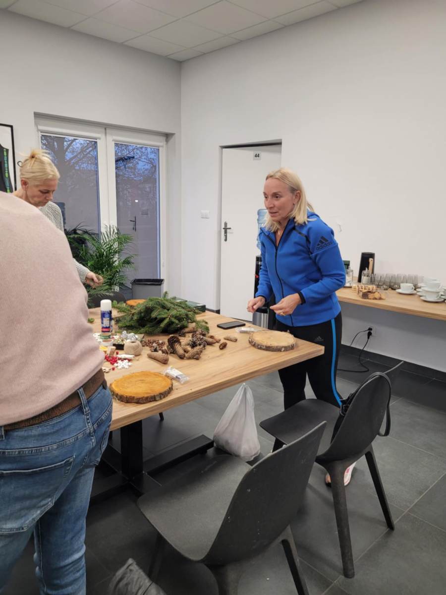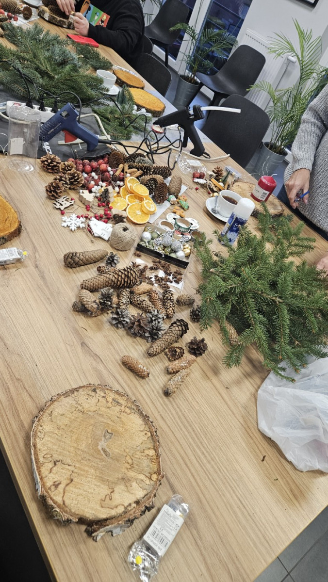 W dniu dzisiejszym odbyły się warsztaty z tworzenia stroików świątecznych na plastrze drewna.