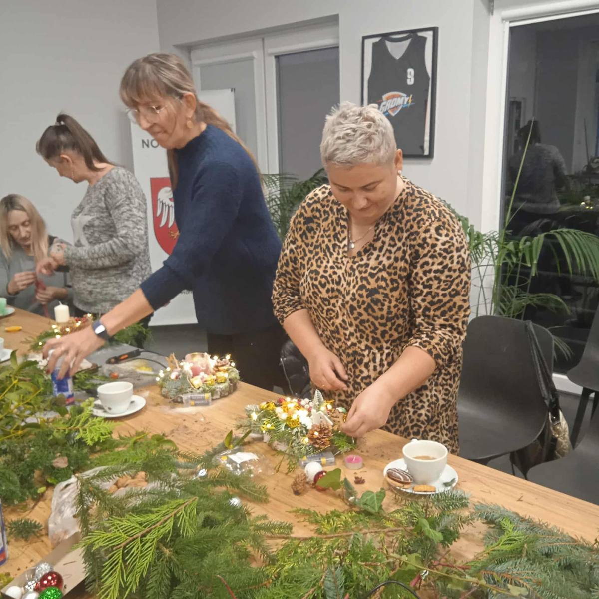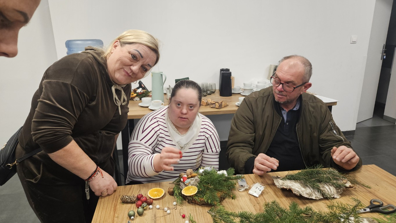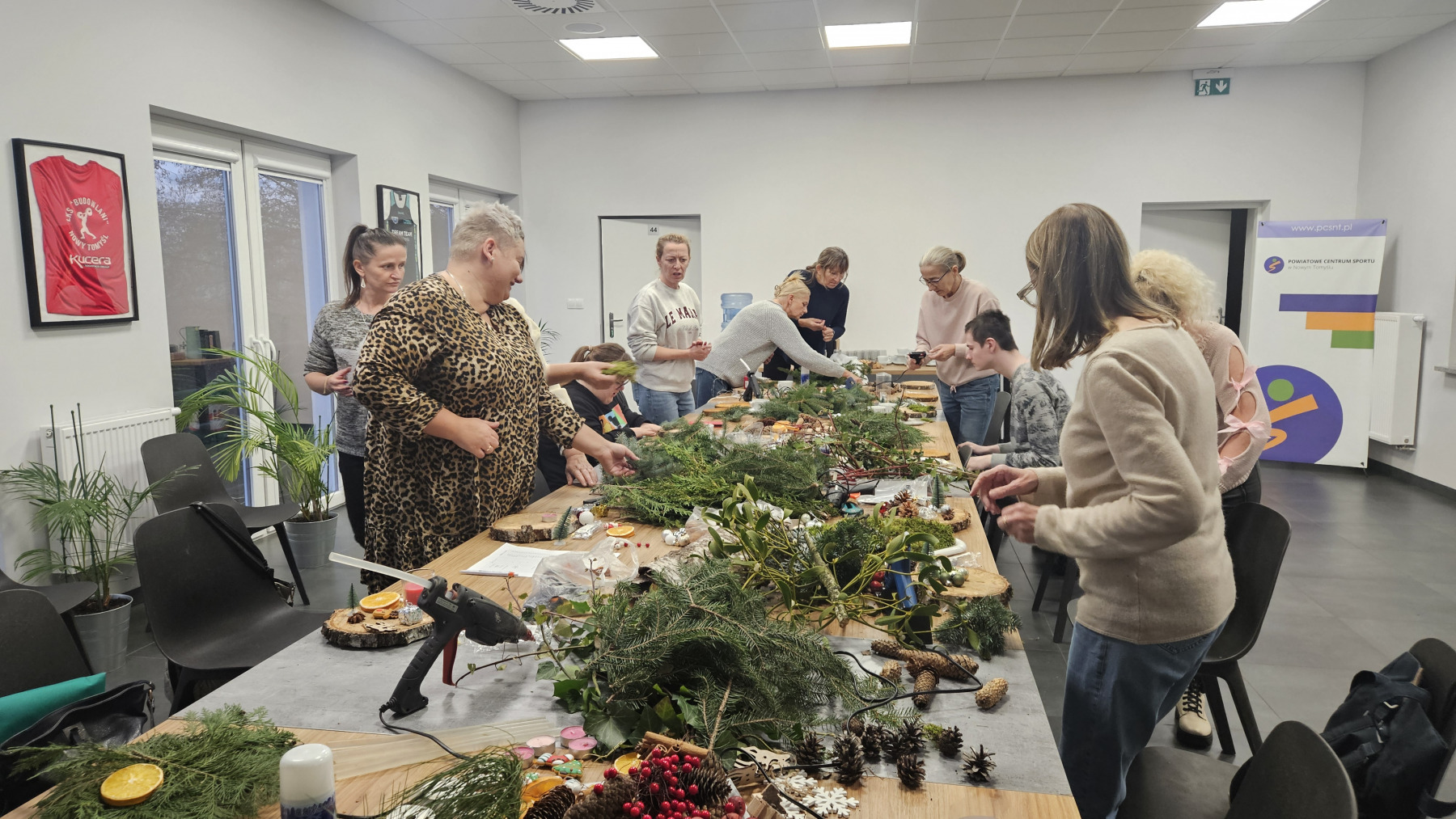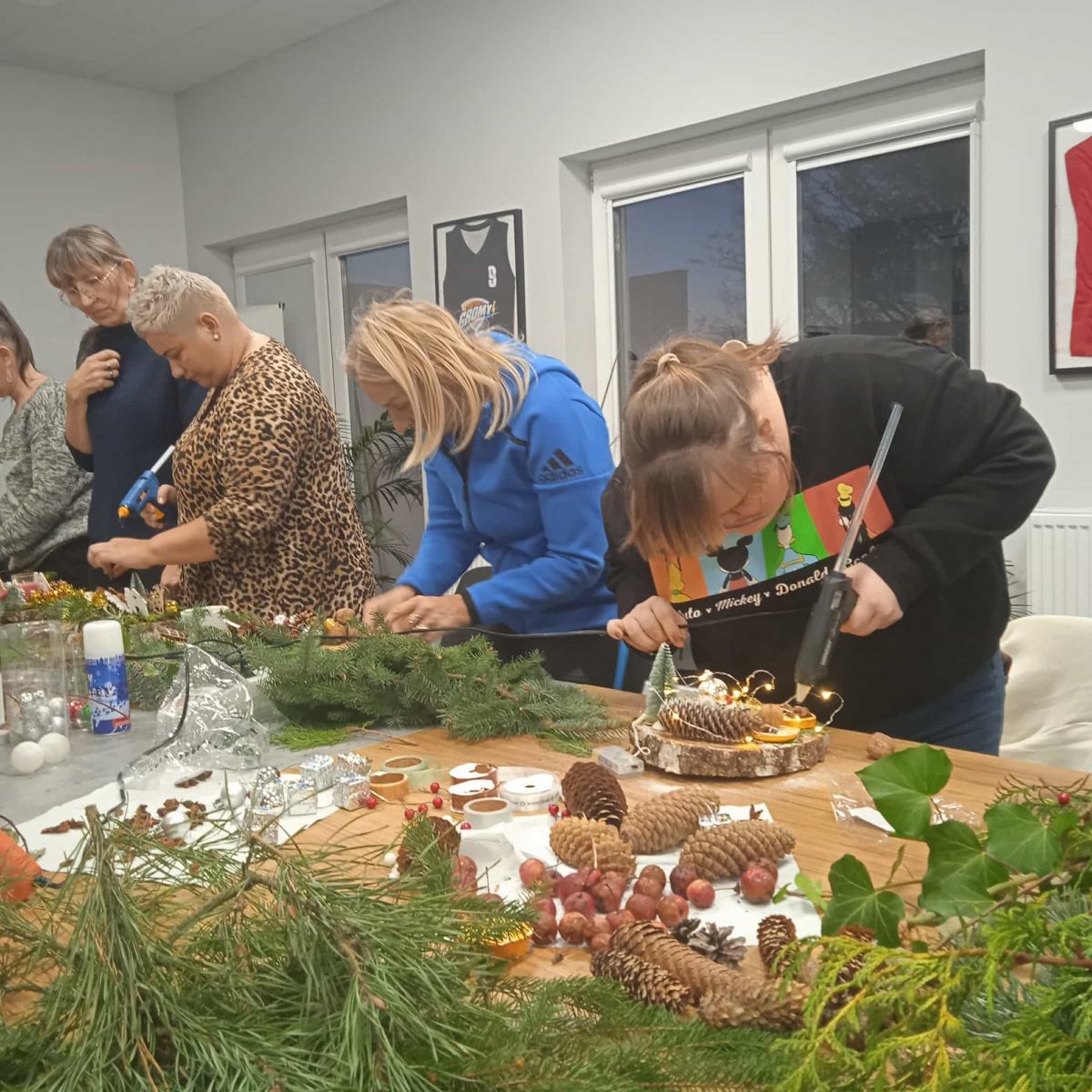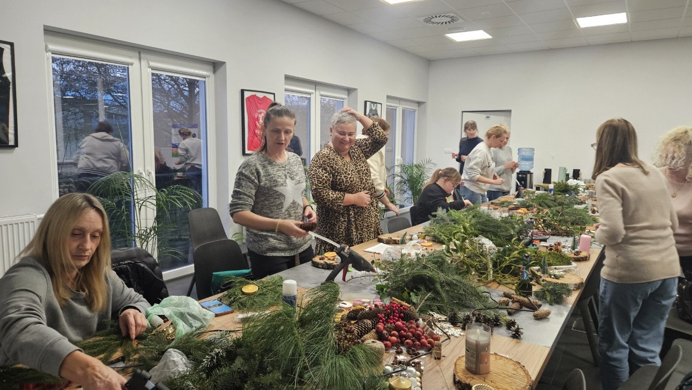 W dniu dzisiejszym odbyły się warsztaty z tworzenia stroików świątecznych na plastrze drewna.