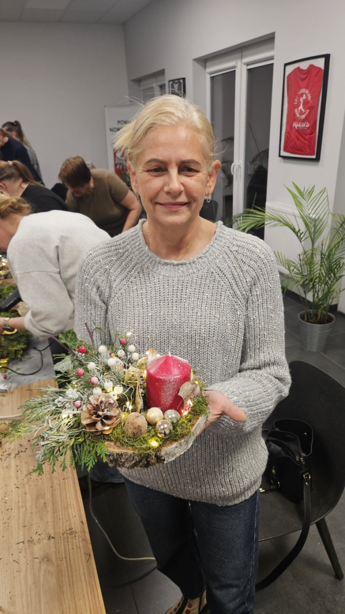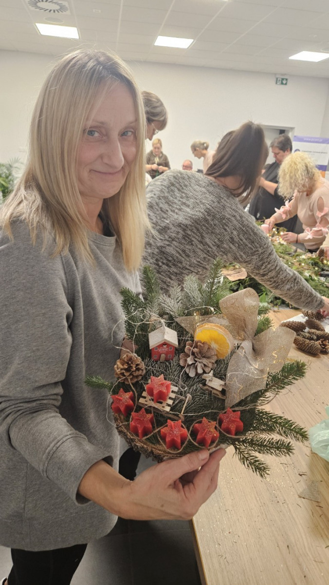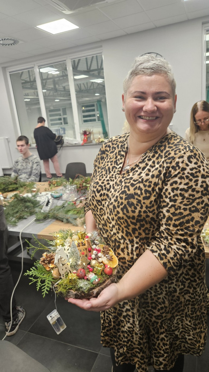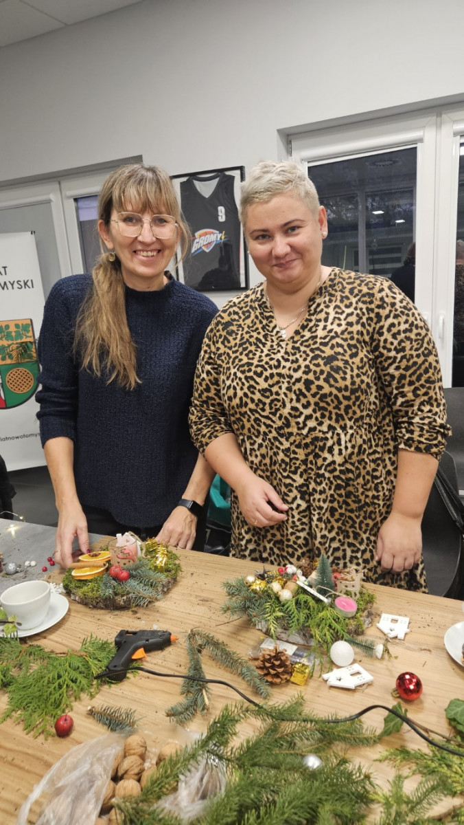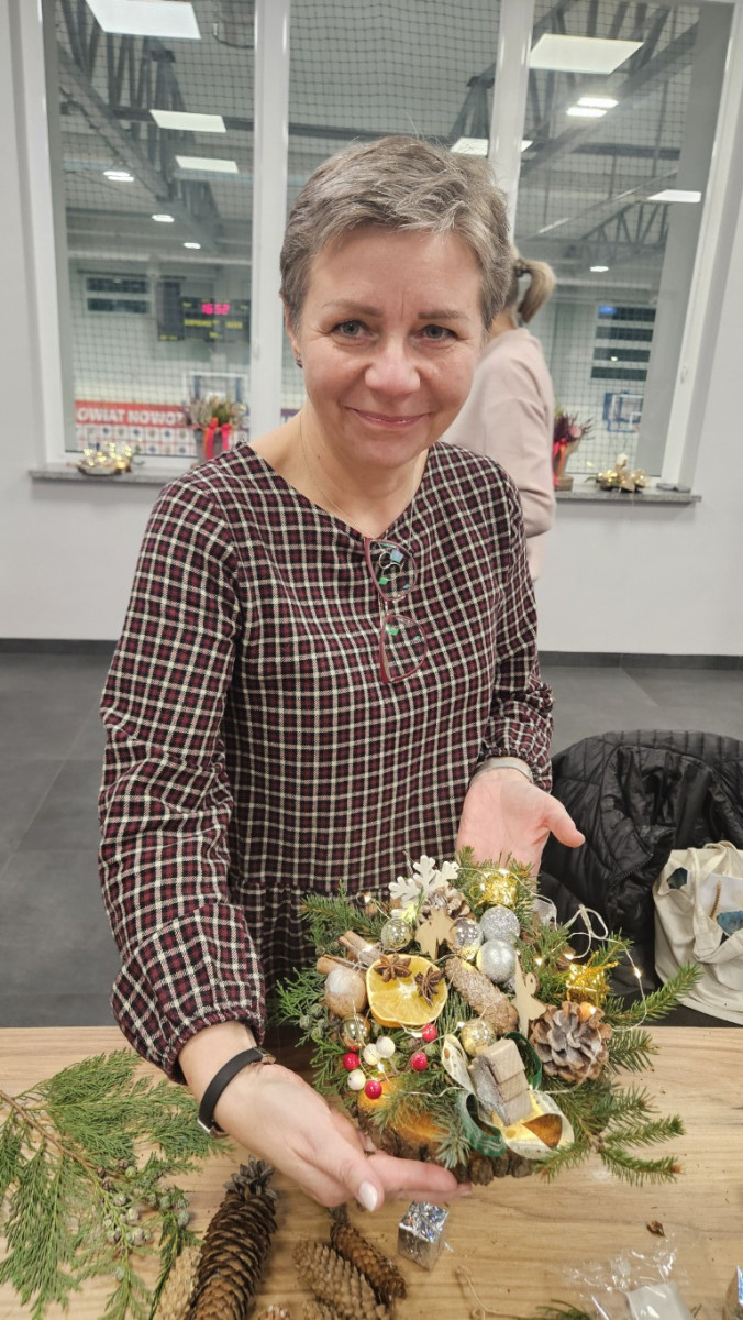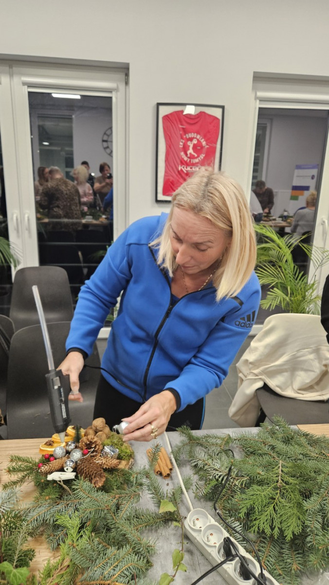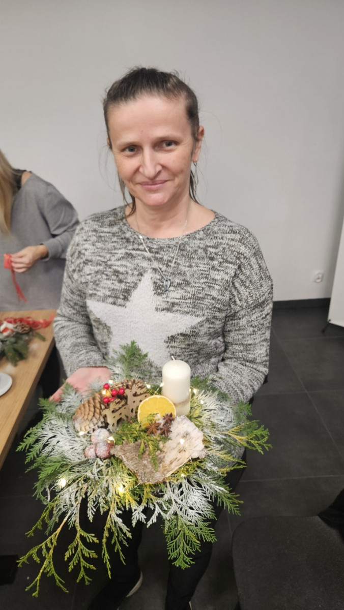 W dniu dzisiejszym odbyły się warsztaty z tworzenia stroików świątecznych na plastrze drewna.