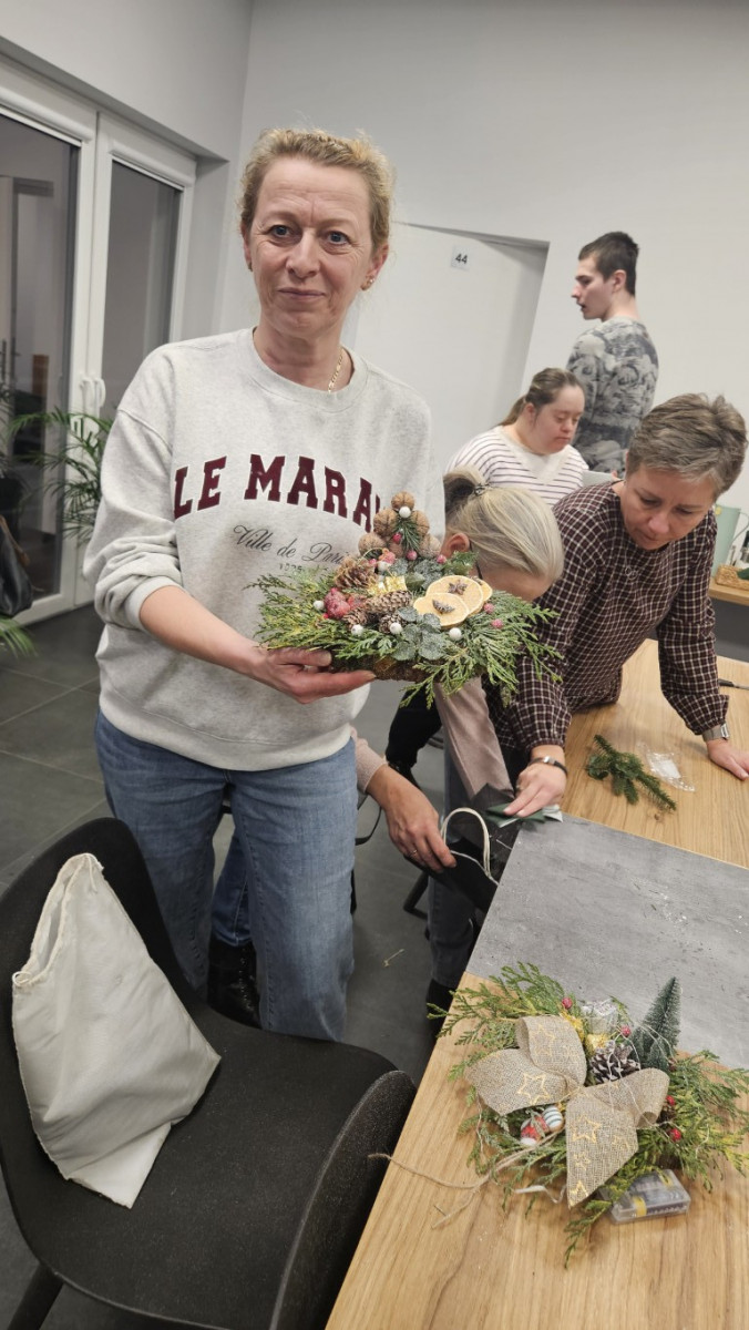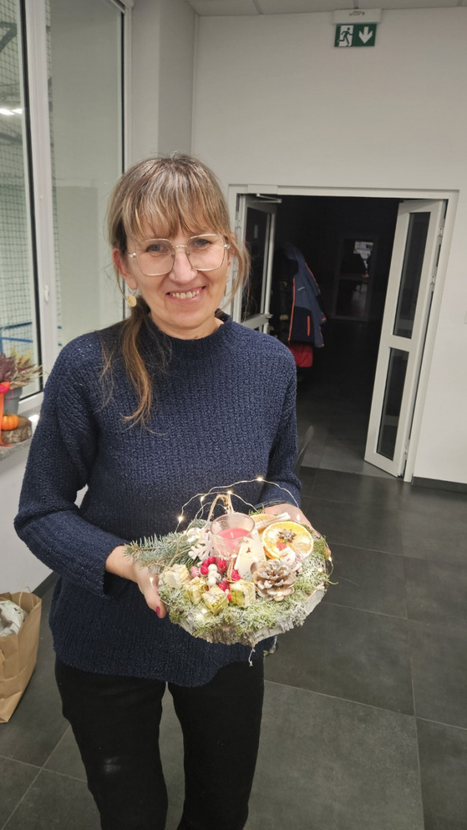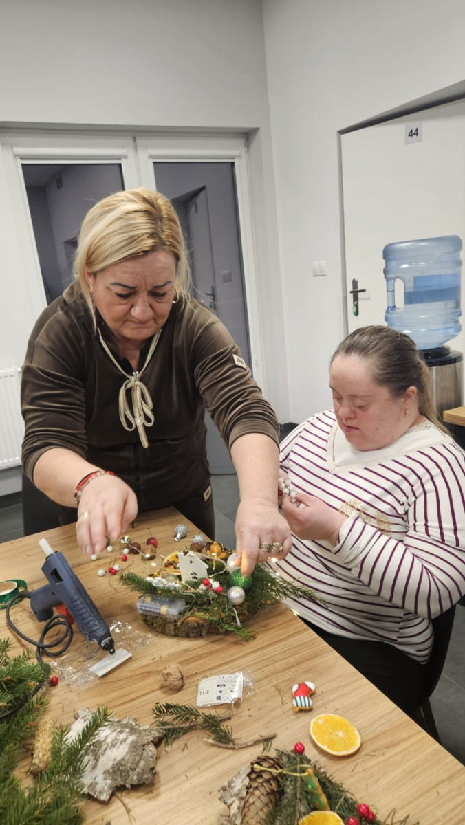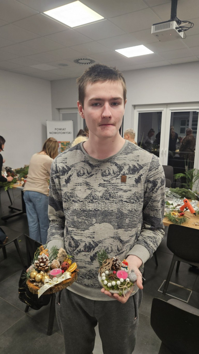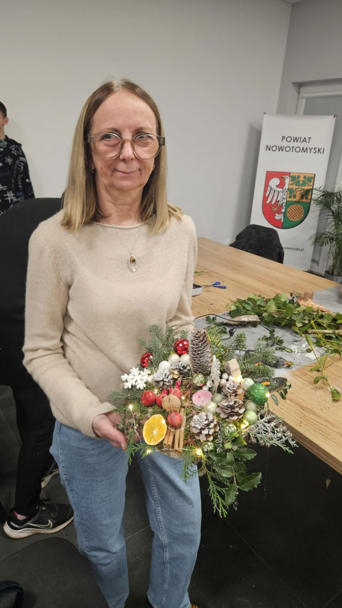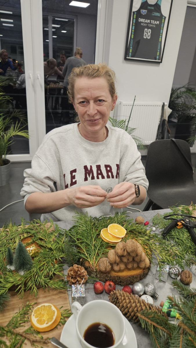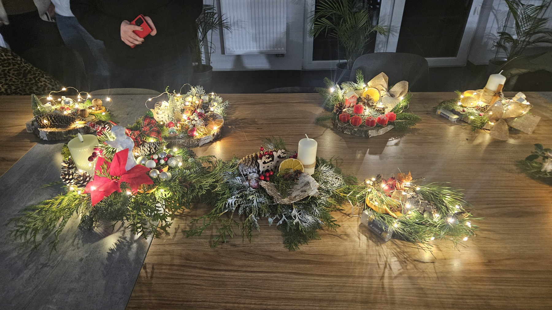 W dniu dzisiejszym odbyły się warsztaty z tworzenia stroików świątecznych na plastrze drewna.